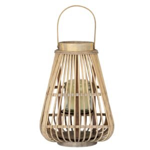 Medium Conical Wicker Lantern With Glass Holder & LED Lights