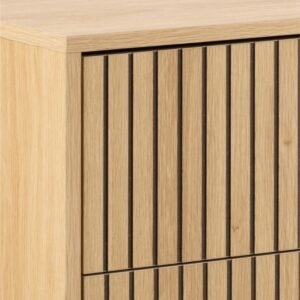 - Durable oak finish lamella fronts that add texture while concealing drawer contents