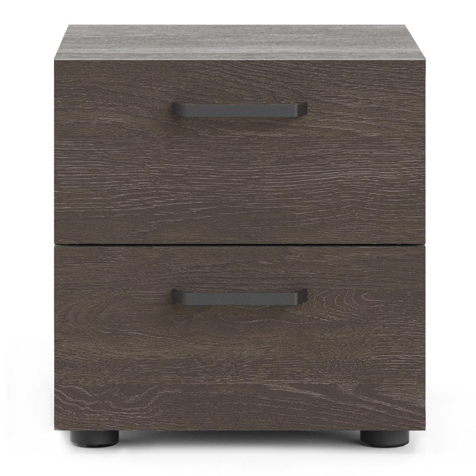 Introducing the Dallas 2 Drawer Nightstand, a sleek and functional piece of furniture that adds a touch of sophistication to any bedroom. With its contemporary design and beautiful Rovere Gessato dark oak color, this nightstand provides a modern and cohesive ambience that is sure to elevate your decor. Featuring two spacious drawers, this nightstand is equipped with modern plastic black handles and retracts smoothly on metal glides with built-in safety stops. The steel brackets provide added support to the bottom of each drawer, ensuring that this piece stays sturdy even with daily use.