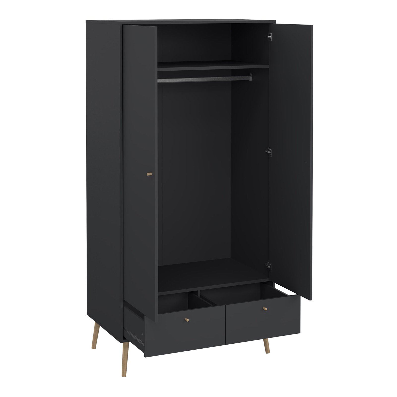 Cumbria Wardrobe with 2 Doors + 2 Drawers Dark Grey