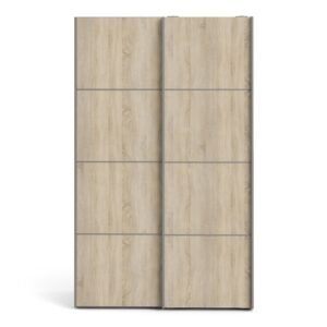 Verona Sliding Wardrobe 120cm in White with Oak Doors with 2 Shelves
