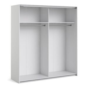 Verona Sliding Wardrobe 180cm in White with White Doors with 2 Shelves