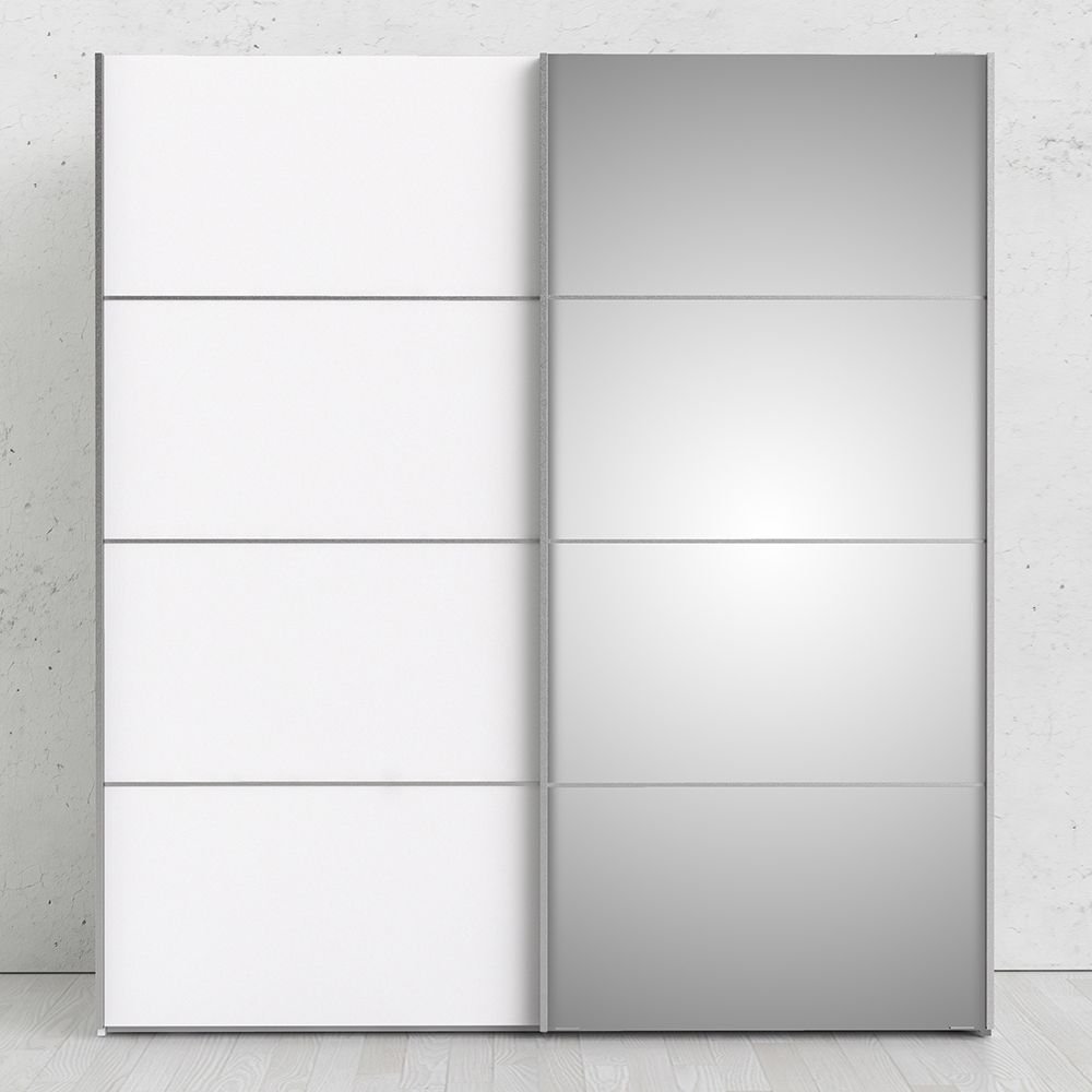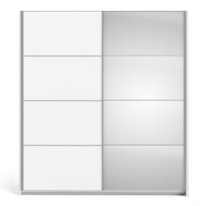 Verona Sliding Wardrobe 180cm in White with White and Mirror Doors with 5 Shelves