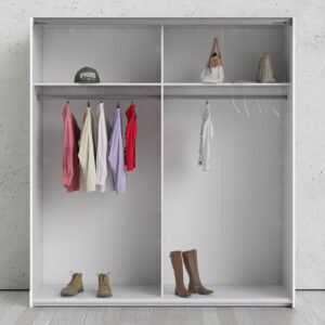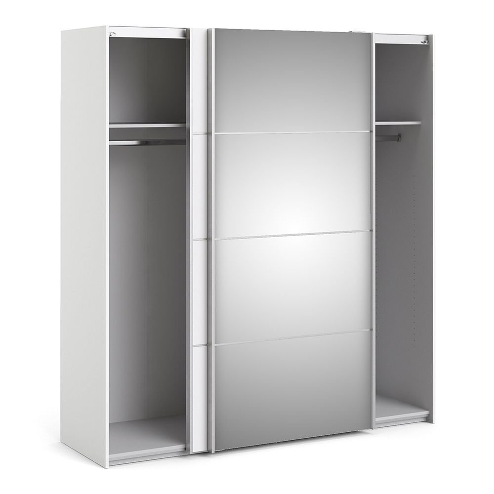 Verona Sliding Wardrobe 180cm in White with White and Mirror Doors with 2 Shelves