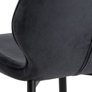 The Femke Dining Chair set in anthracite combines comfort and contemporary style. Upholstered in ultra-soft corduroy fabric with gentle curves, these chairs are designed to elevate any dining space. The matte black metal base provides stability, while the subtle zip detail adds a modern accent. Perfect for long meals and lively gatherings around the table.