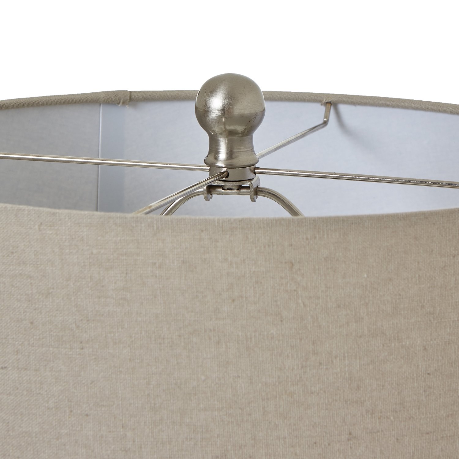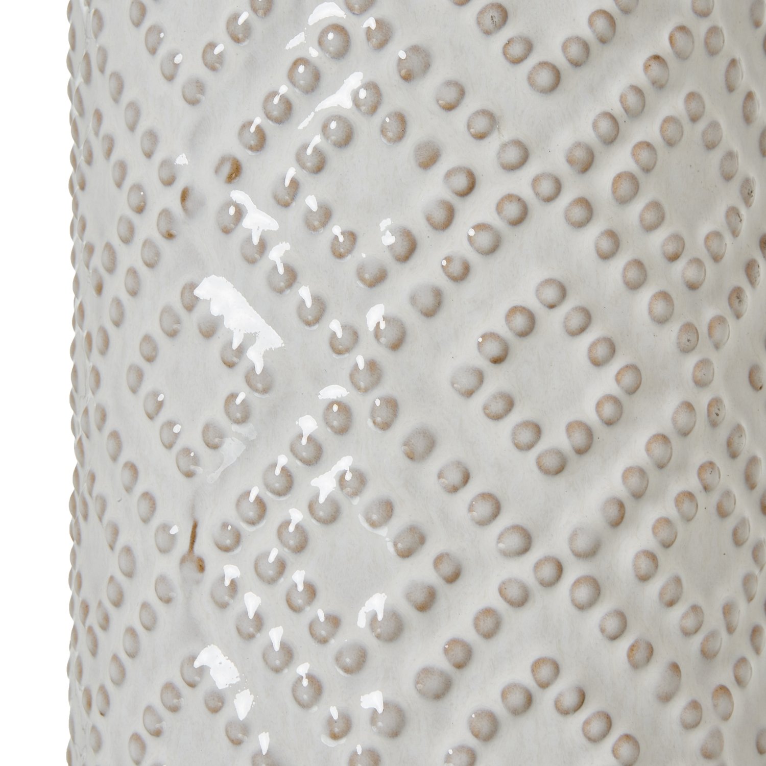 White Beaded Ceramic Lamp With Linen ShadeWhite Beaded Ceramic Lamp With Linen Shade