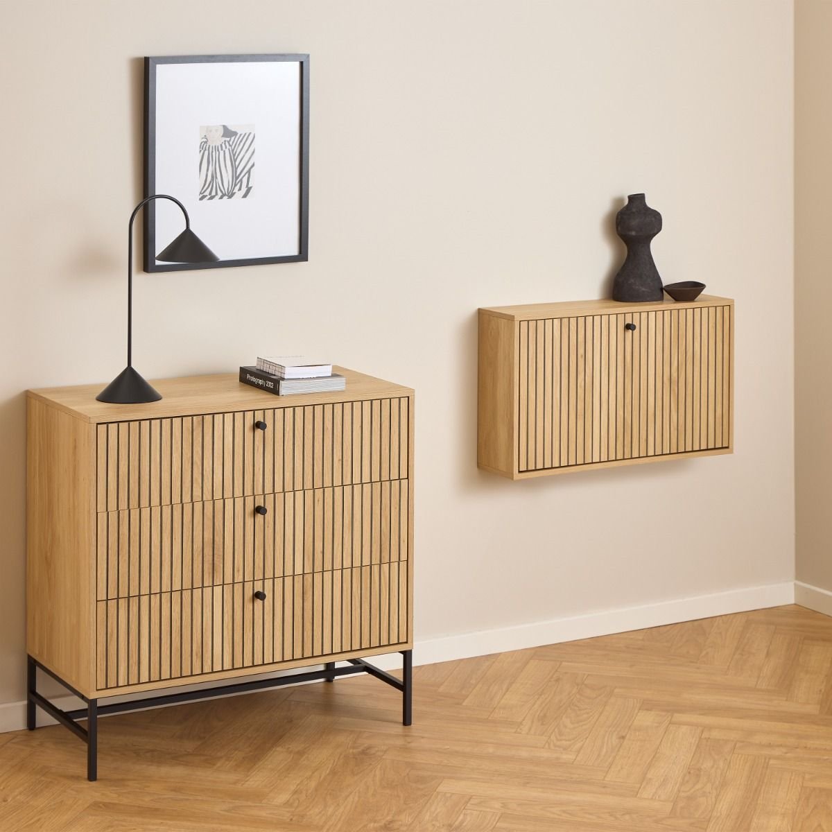 - The oak look melamine surface is not only attractive but also easy to maintain.