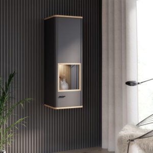 Klara Display Cabinet with 1 Glass Door in Grey and Oak inc LED Lighting