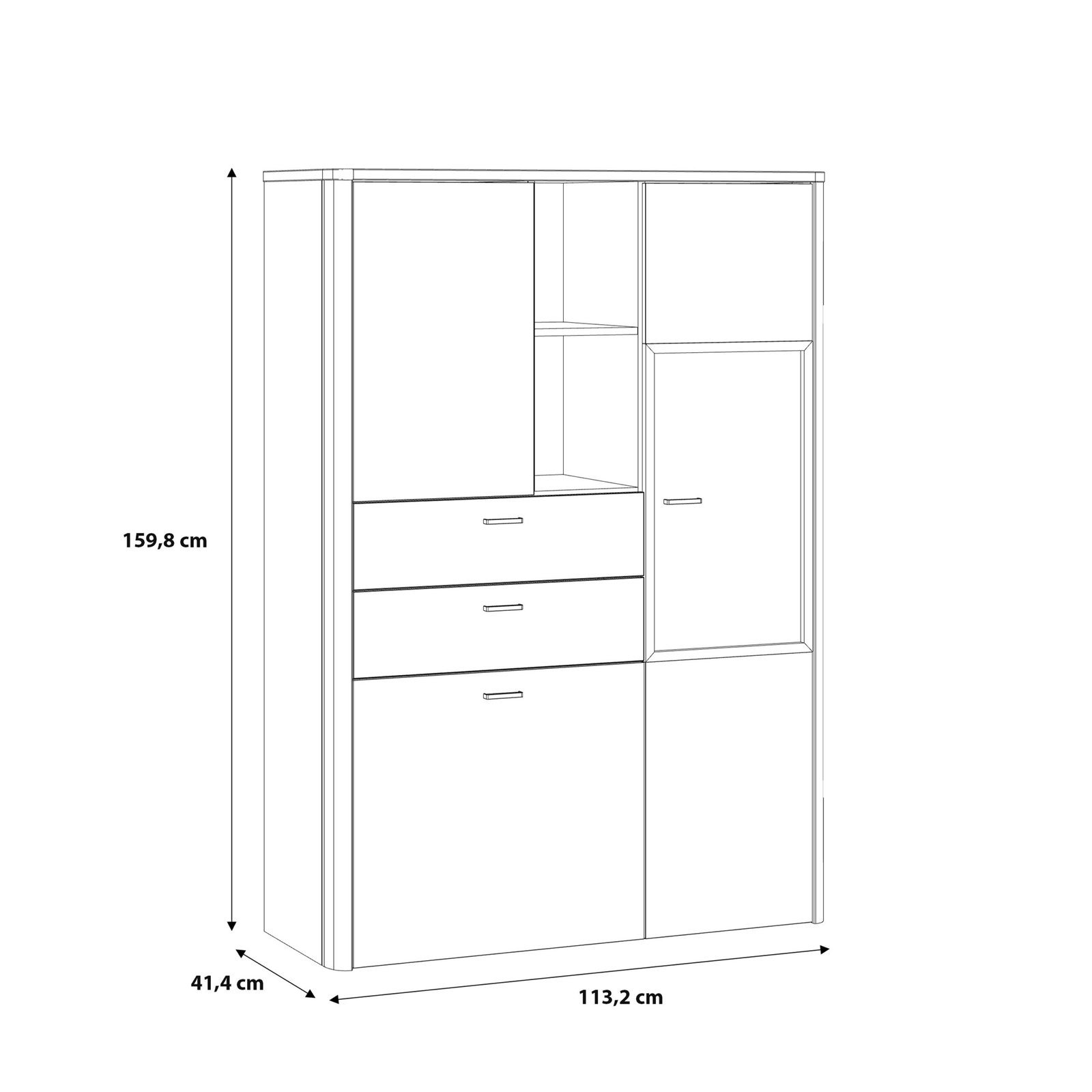 This cabinet doesn’t just look good, it’s highly functional, too. Behind the sturdy glass door, the shelves can hold up to 3 kg each, making them ideal for displaying lightweight or delicate items. Meanwhile, two spacious drawers and two enclosed cabinets are perfect for storing everything from paperwork to home accessories, letting you keep your space neat and clutter-free. With soft-closing hinges, you’ll enjoy smooth, quiet operation every time you use it, adding a touch of luxury to your daily routine. The Klara Display Cabinet is built to last, providing both style and durability. With an assembled weight of 74.9 kg and dimensions of 113.2 cm (W) x 159.8 cm (H) x 41.4 cm (D), it offers a vertical storage solution that doesn’t dominate your floor space. Its versatile aesthetic fits seamlessly into modern interiors, while the timeless grey and oak combination complements classic décors as well.