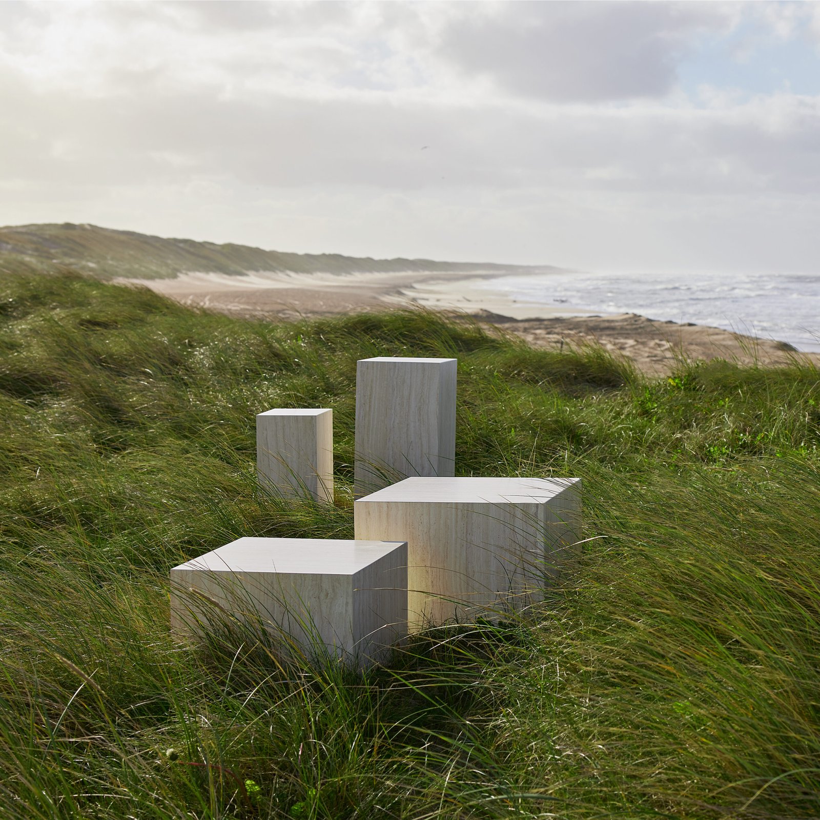 Dice Square Coffee Table Set in Light Travertine EffectDice Square Coffee Table Set in Light Travertine Effect