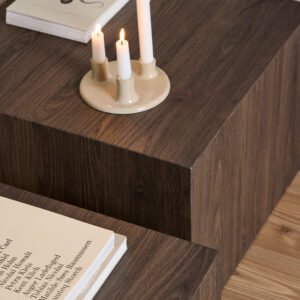 The Dice square coffee table set redefines modern living room style with its bold geometric presence and versatile design. These striking cubic tables create an immediate style statement while offering practical functionality. Designed by Lasse Cha Pedersen, each table serves as both a functional surface and a sculptural element. Whether styled as a duo or separated for flexible use, these tables offer endless arrangement possibilities.