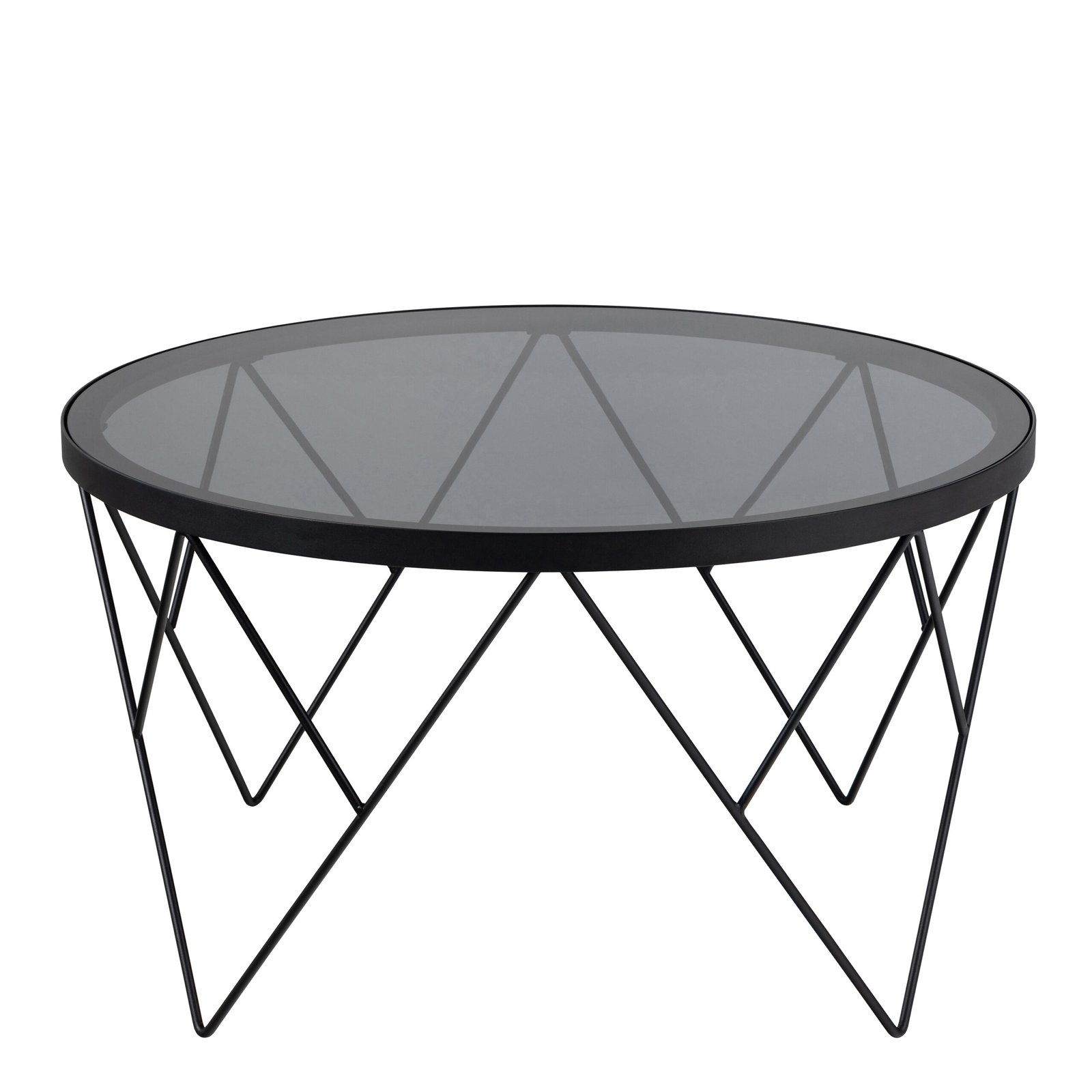Add a sleek, modern touch to your decor with this round coffee table, featuring a smoked tempered glass top and an intricate wire base in matte black. Its contemporary design is sure to be a conversation starter in any living space.
