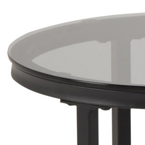 Enhance your living area with this sophisticated set of two coffee tables, each featuring a chic black marble effect top paired with smoked tempered glass. The matte black steel base adds a touch of elegance, making them a perfect match for any modern decor.
