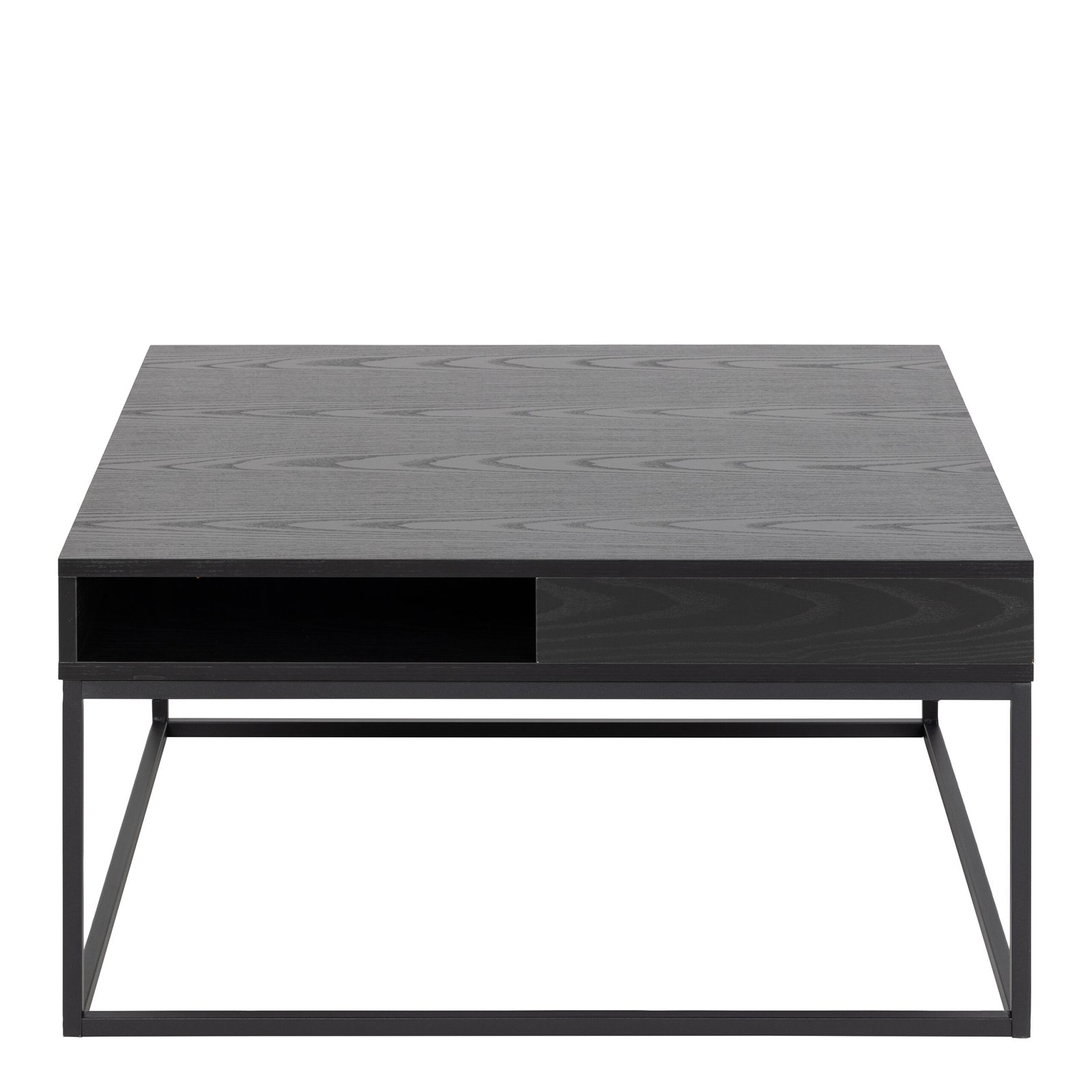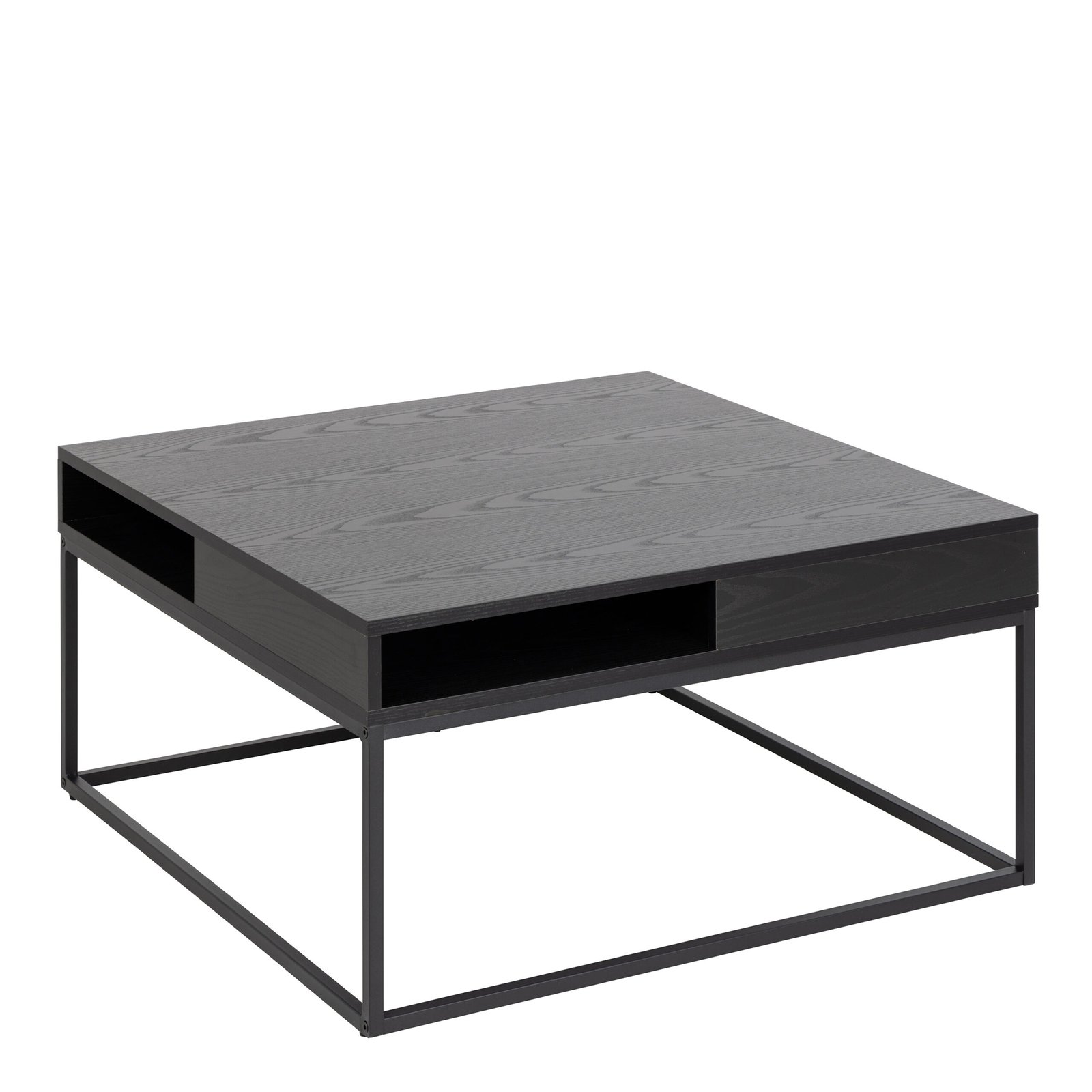 Unveil the essence of modern living with our square coffee table, featuring an ash black rough top for a bold statement. The matte black steel base ensures durability, and the open compartment adds a practical touch to this stylish piece, perfect for contemporary interiors.