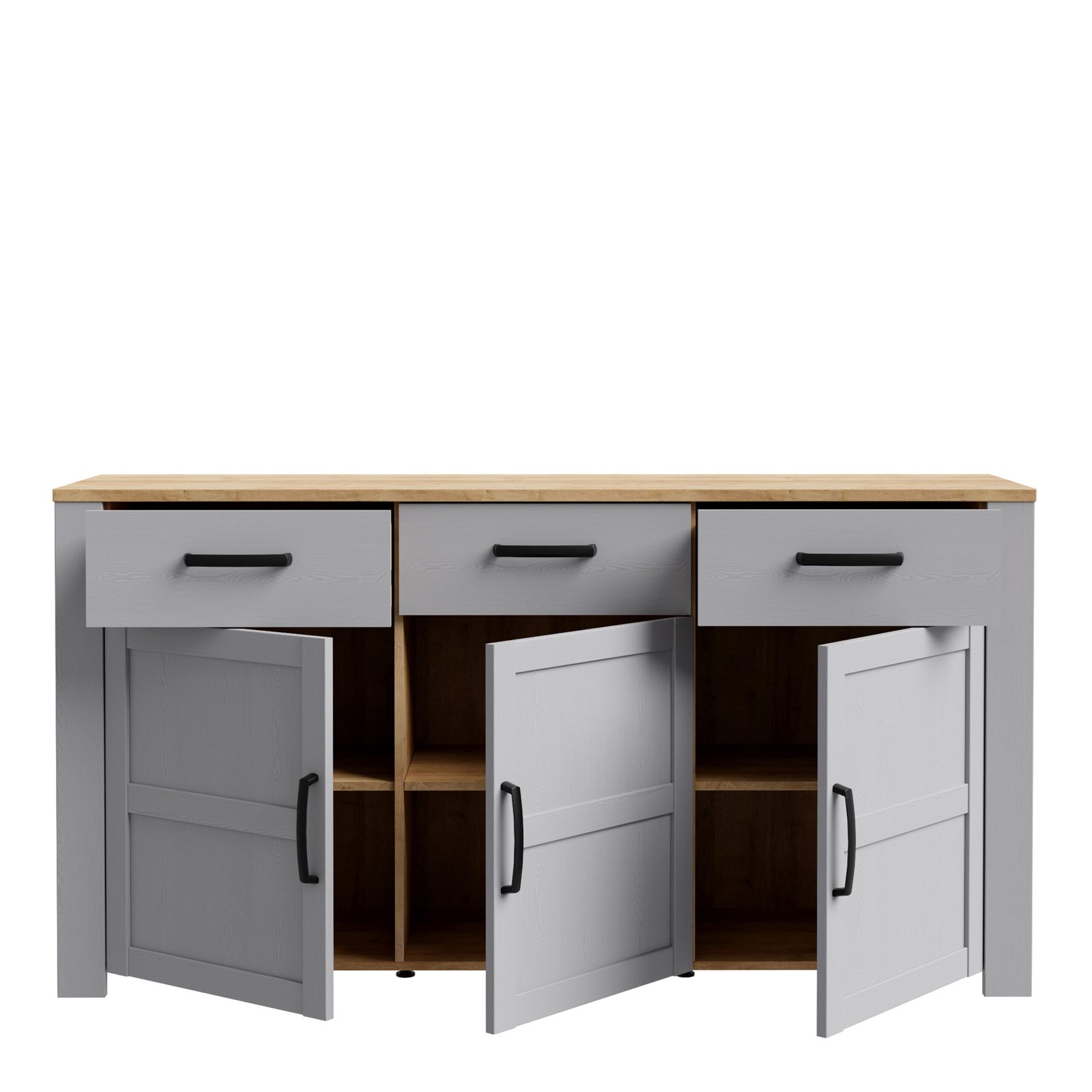 Bohol 3 Door 3 Drawer Sideboard in Riviera Oak/Grey OakBohol 3 Door 3 Drawer Sideboard in Riviera Oak/Grey Oak