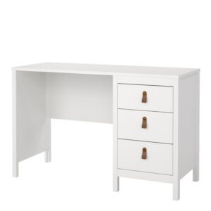 Introducing the Barcelona 3-Drawer Desk, a contemporary and stylish addition to your workspace. With its sleek design, elegant lines, and simple leather handles, this desk effortlessly enhances the aesthetics of any room. Choose the timeless white finish for a sophisticated look that seamlessly complements your modern decor.