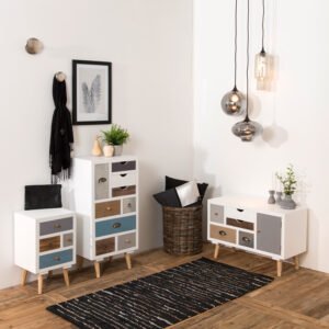 Thais White Shabby Chic Multi Coloured Bedside with 4 Drawers