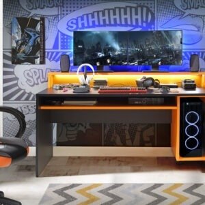 Tezaur Black/Orange Gaming Desk with Colour Changing LED