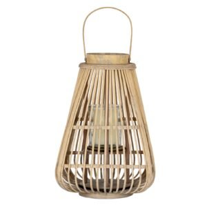 Medium Conical Wicker Lantern With Glass Holder & LED Lights