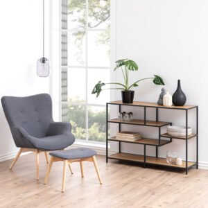 Seaford Wide Black Metal Bookcase with 4 Oak Shelves