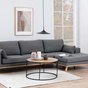 Seaford Black Metal Round Coffee Table with Oak Top