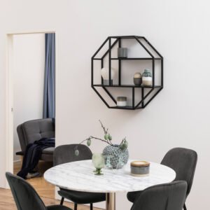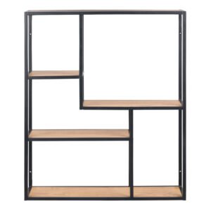 Seaford Octagonal Metal Wall Shelf in Black & Oak
