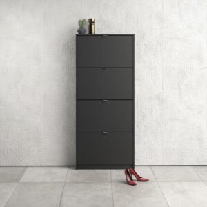 Madrid Shoe Cabinet 4 Flip Down Doors in Matt Black