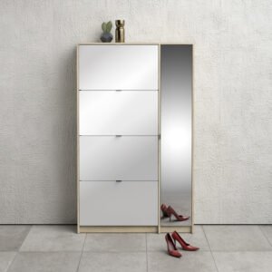 Shoes Shoe Cabinet 4 Flip Down Doors and 2 layers 1 Mirror Door Oak structure
