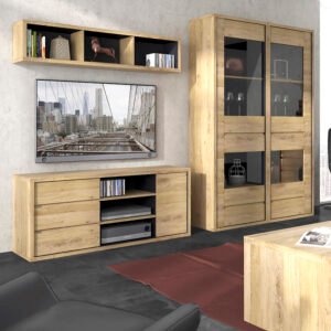 Nikomedes TV Unit in Spica Oak/Matt Black/Bartex Oak
