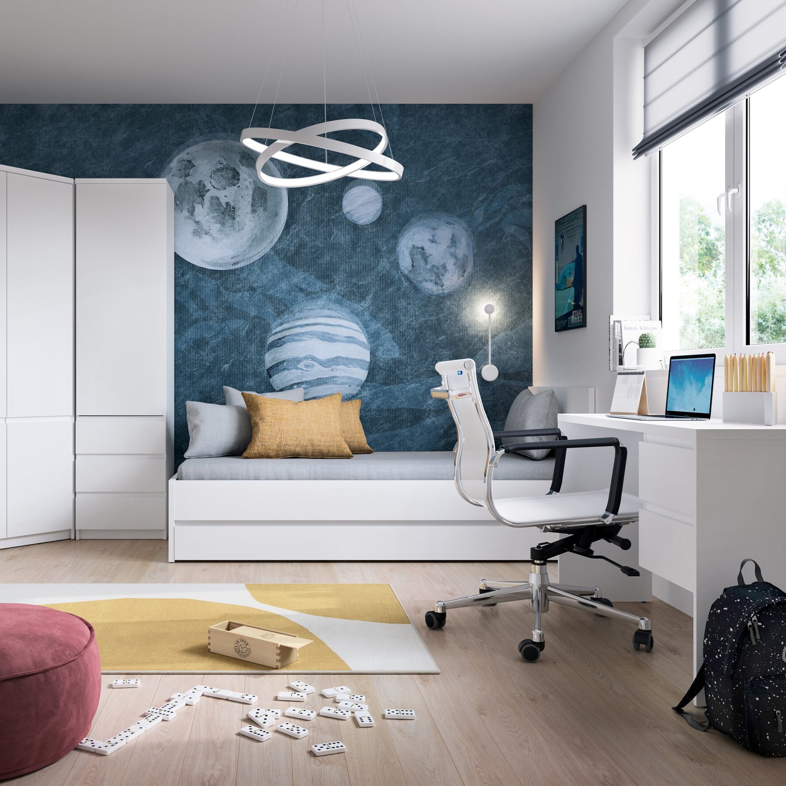 The underwear has a handle-free system that is convenient to use. The body is universal , which means that it is extremely practical , it can be installed so that it opens to the left or right – the choice is yours. A simple, geometric form will be perfect for interiors decorated in a minimalist or modern style. The furniture is made of laminated chipboard, resistant to moisture, scratches, damage and high temperature. The program is available in two color versions: Alpine White and Golden Ribbeck Oak.