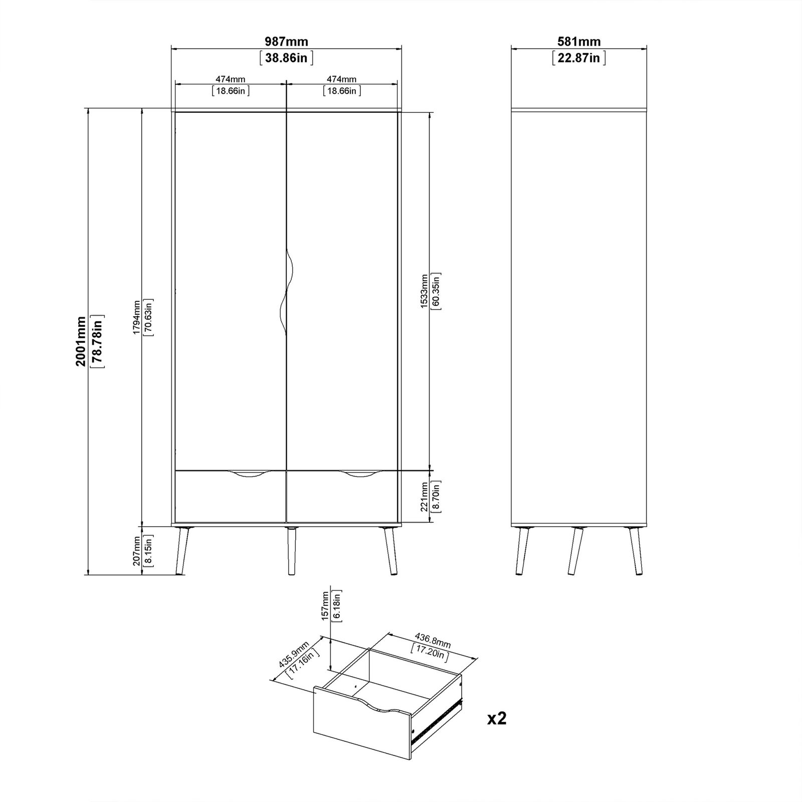 Oslo Wardrobe 2 Doors 2 Drawers in Black and Oak