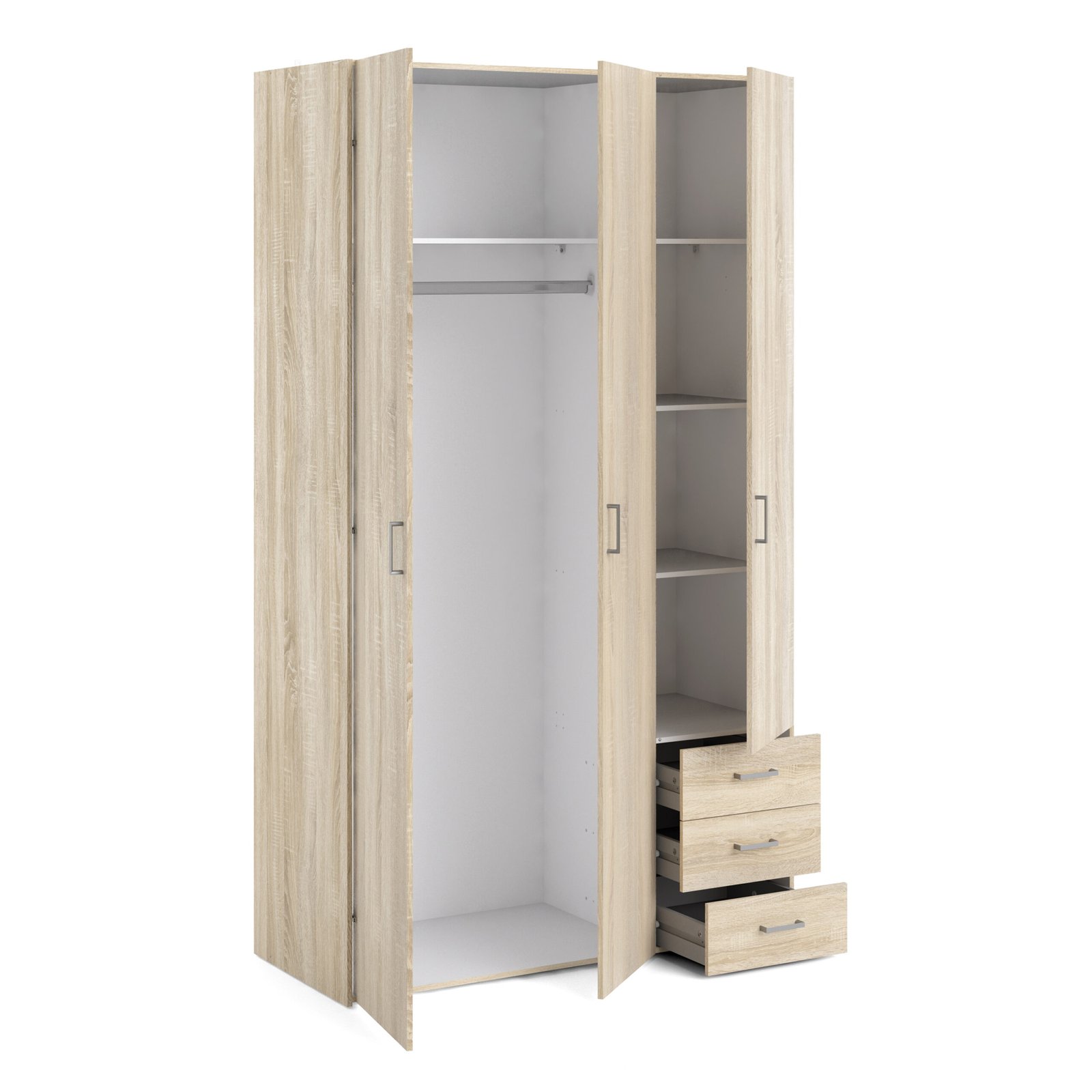 Space Wardrobe 3 Doors 3 Drawers in Oak 2000