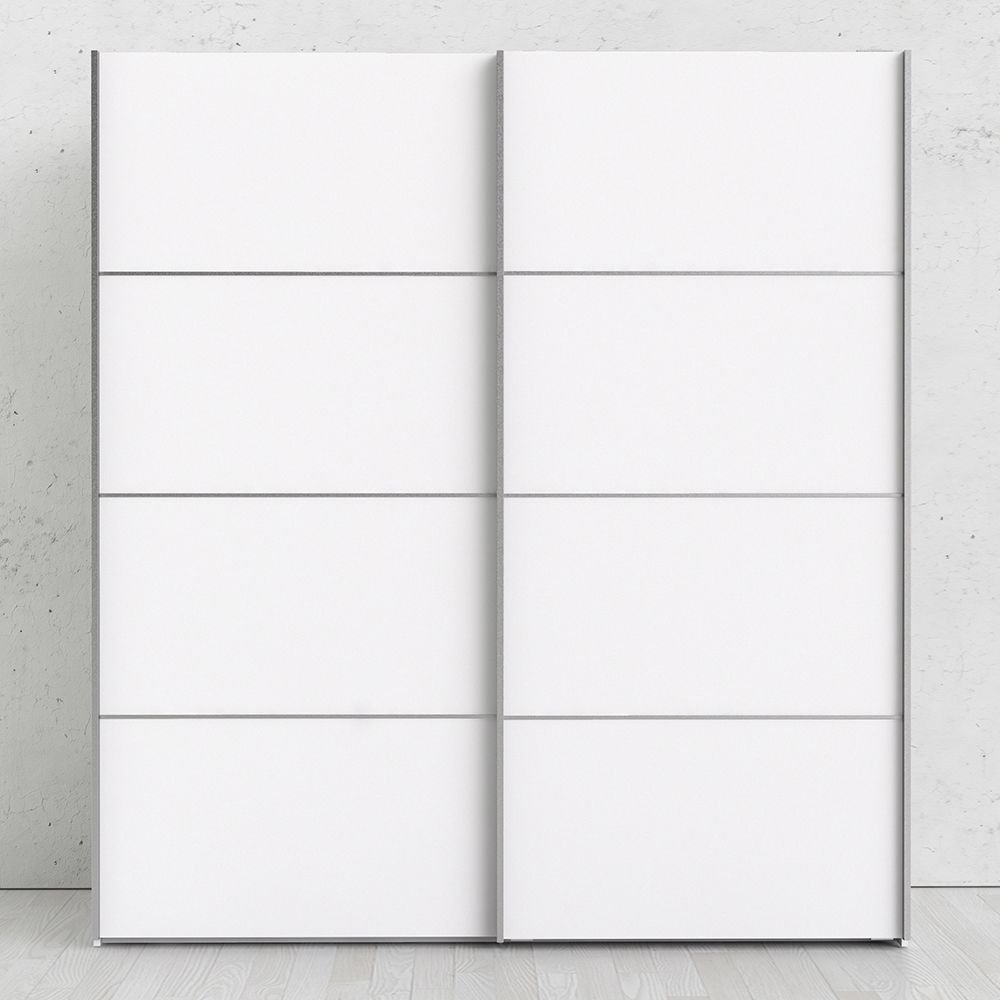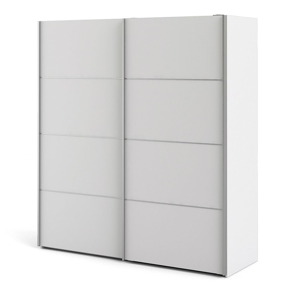 Verona Sliding Wardrobe 180cm in White with White Doors with 2 Shelves