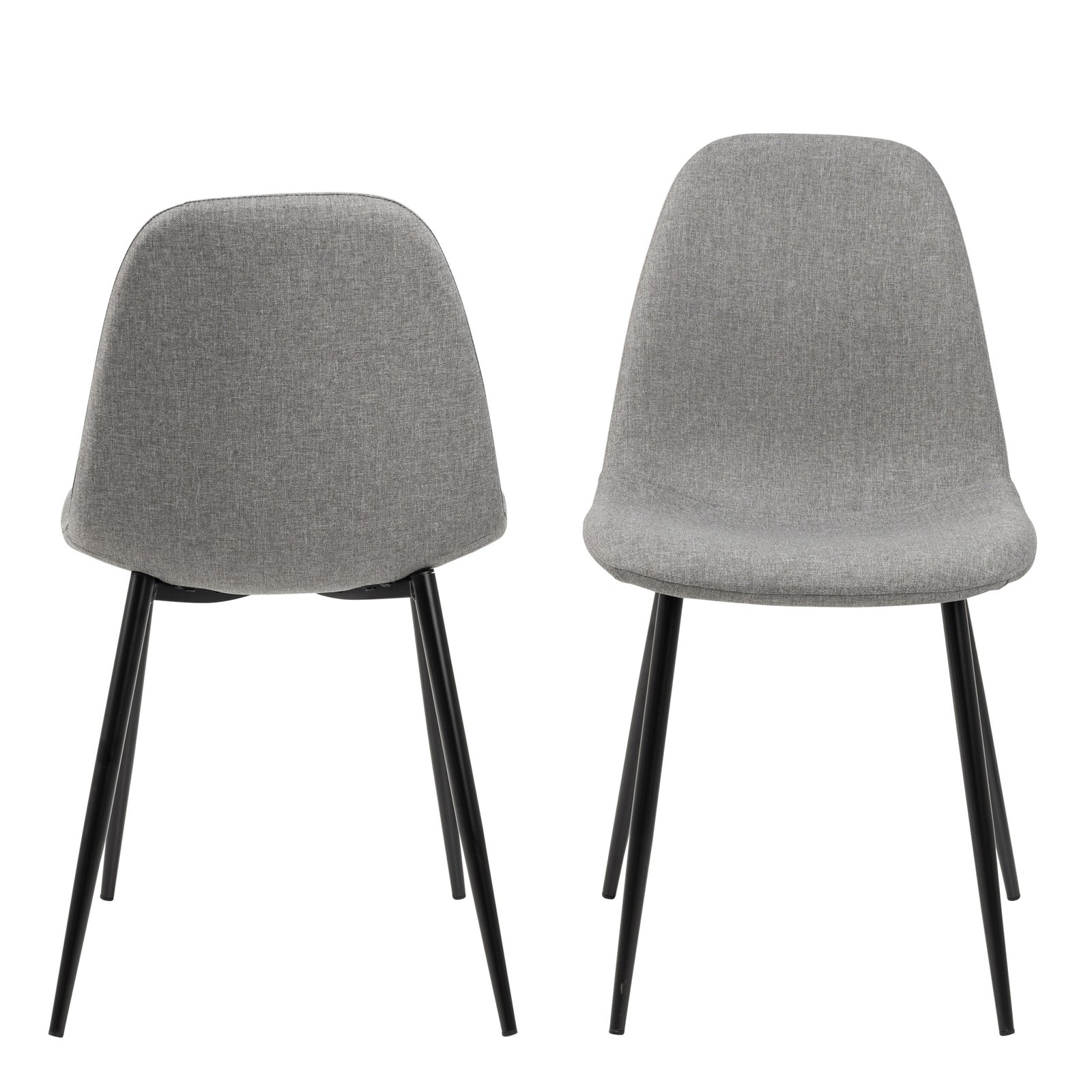 Introduce a touch of refined simplicity to your dining area with our elegant chair, upholstered in light grey Calle fabric. The chairs matte black powder-coated steel base offers a sleek contrast, ensuring both style and stability. This piece comes in a set of four, ready to complete your dining ensemble.