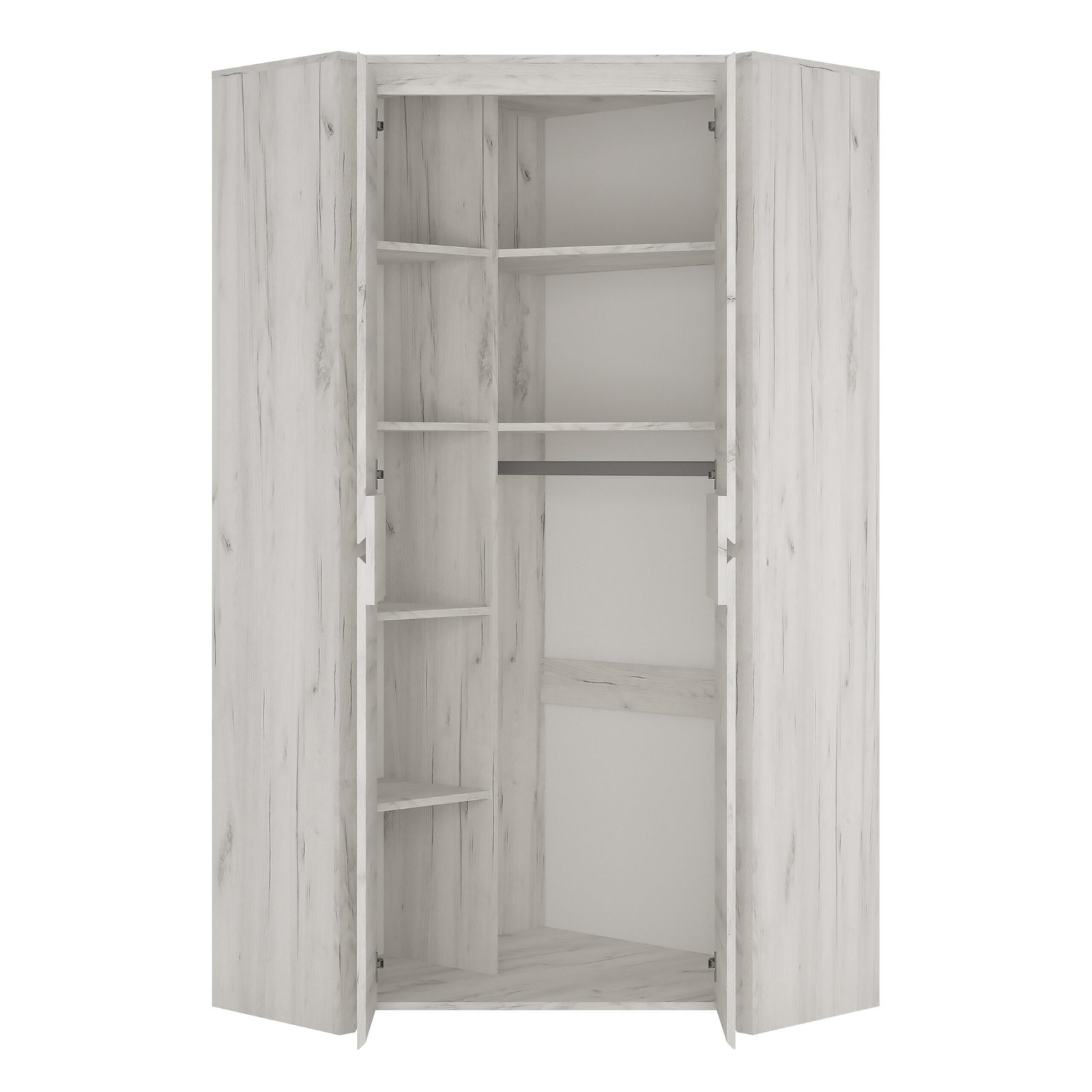 Transform overlooked corner spaces into a sleek, organised haven for your clothes with our corner wardrobe. This fitted wardrobe from our Angel collection sports an oak melamine finish, making it scratch and moisture resistant, ensure it lasts long and adapt to your changing lifestyle.