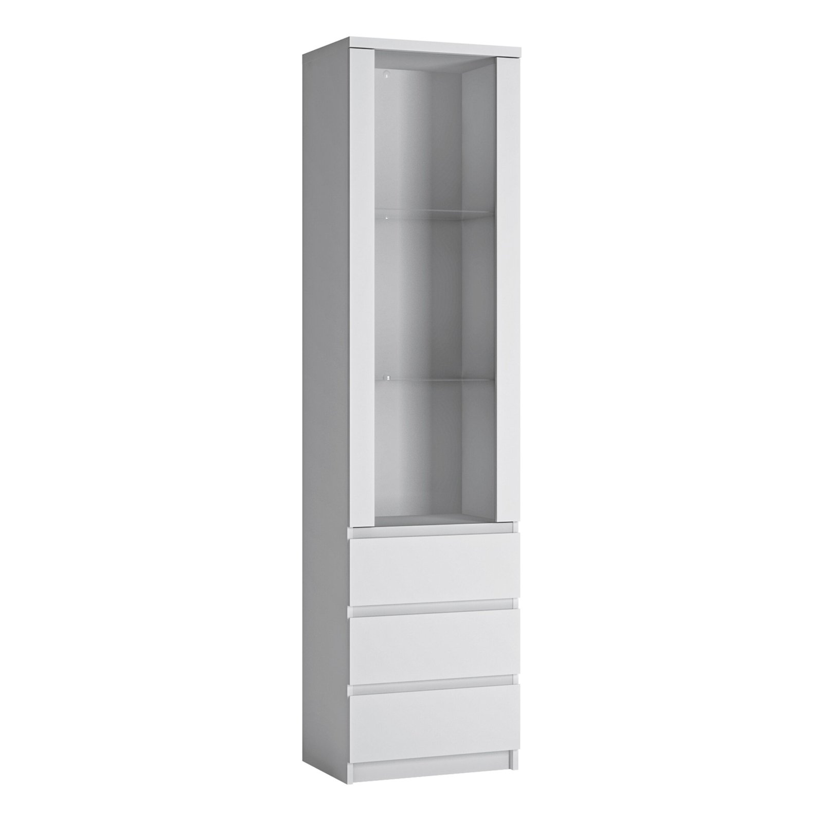 Fribo Tall Narrow 1 Door 3 Drawer Glazed Display Cabinet in White