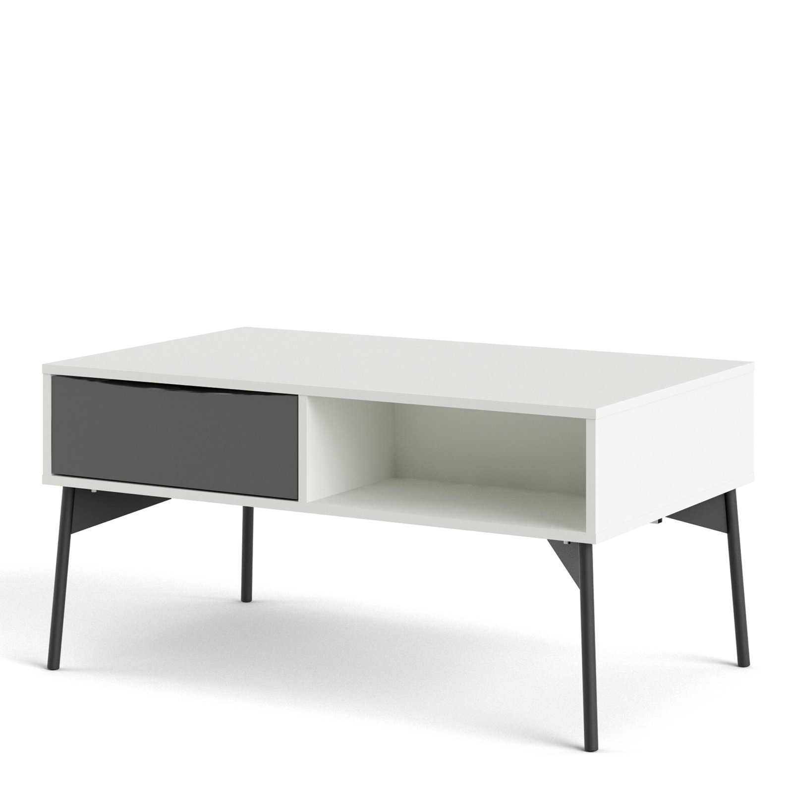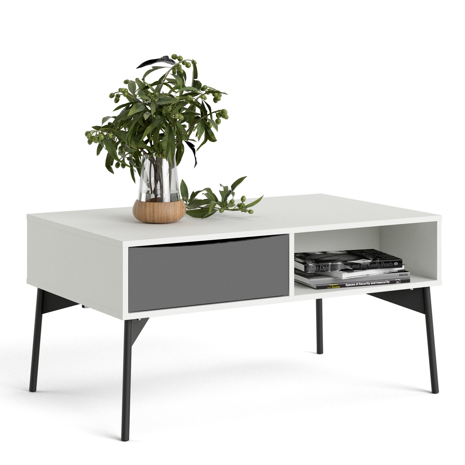 Fur Coffee Table with 1 Drawer in Grey and WhiteFur Coffee Table with 1 Drawer in Grey and White